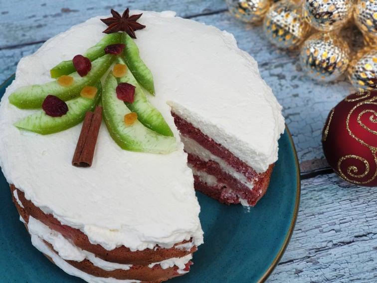 Díszítés: aszalt pomelo, aszalt vörösáfonya, kandírozott narancs kocka, csillagánizs, fahéjrúd